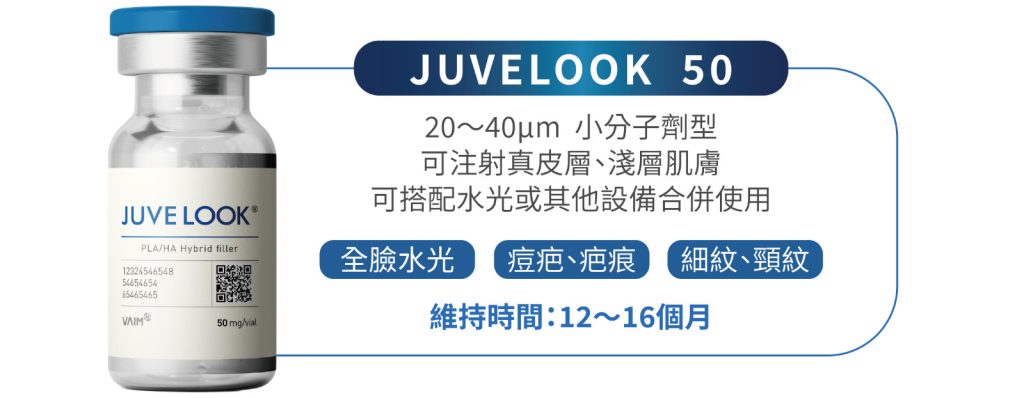 ● 如果想要改善痘疤,或有做全臉水光治療的需求,建議選擇 Juvelook 50mg