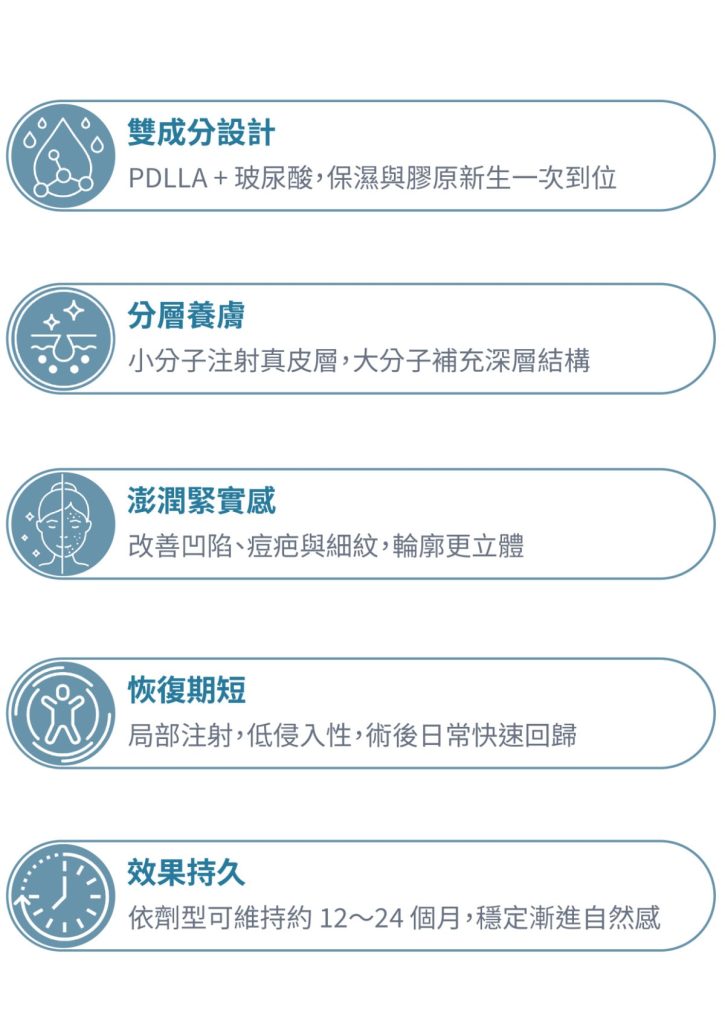 專利PDLLA+HA複合配方,一次注入、雙重作用