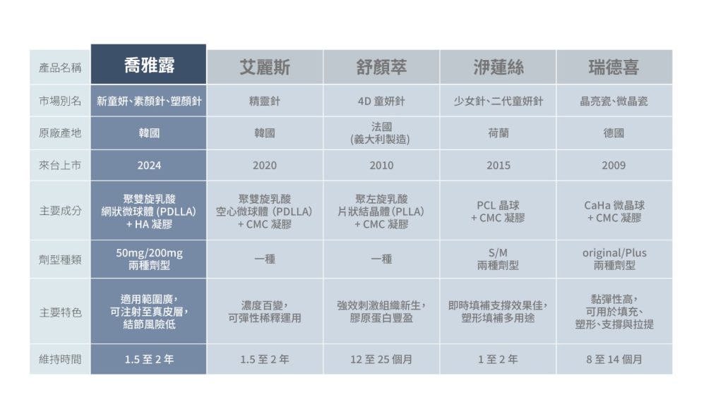 喬雅露提供兩種劑型選擇,針對不同層次與部位進行精準注射,可協助改善臉部與身體常見問題,如細紋、皺紋、凹陷、痘疤與肌膚粗糙等,療程採局部注射方式,具低侵入性、恢復期短,適合希望溫和調理膚況的族群。